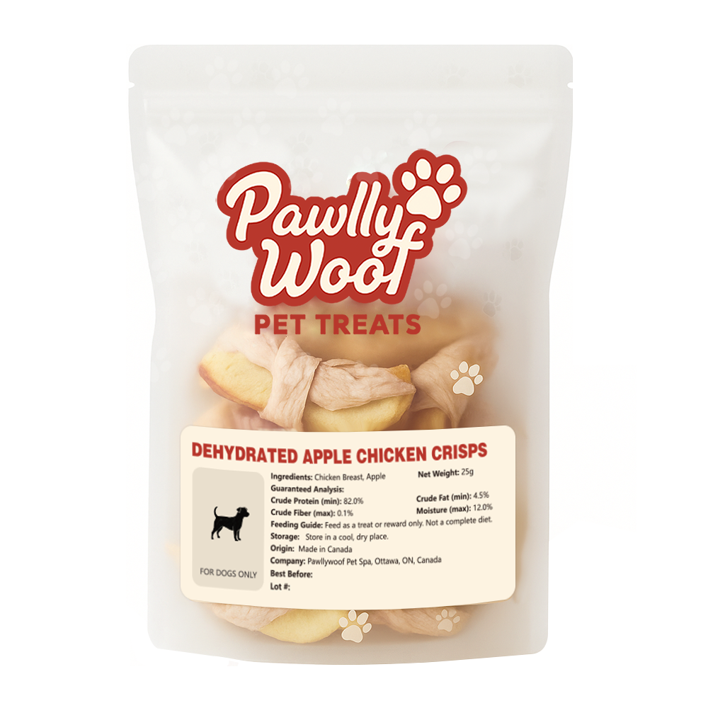 Crisp apple slices coated with tender chicken, dehydrated slowly for a light, crunchy bite. A naturally sweet, protein-boosted snack perfect for training, picky eaters, and everyday rewarding.