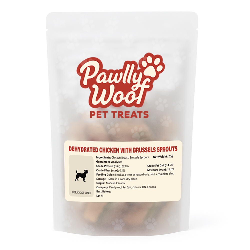 Tender chicken paired with crunchy brussel sprouts, gently dehydrated in small batches. A wholesome, two-ingredient treat packed with natural flavour, fibre, and lean protein — perfect for everyday snacking and training.